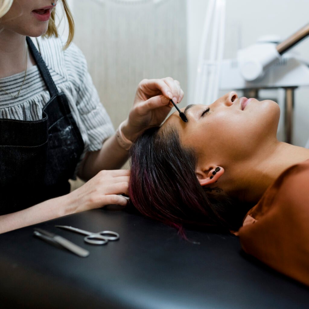Modelação e design de sobrancelhas para um olhar harmonioso, utilizando técnicas de precisão e produtos de alta qualidade.