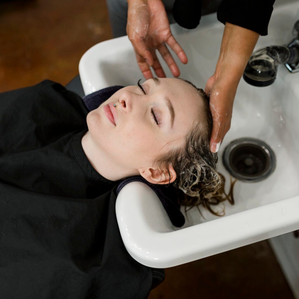 Lavagem e esticamento do cabelo com produtos de qualidade, garantindo brilho, suavidade e estilo duradouro, feito por profissionais.